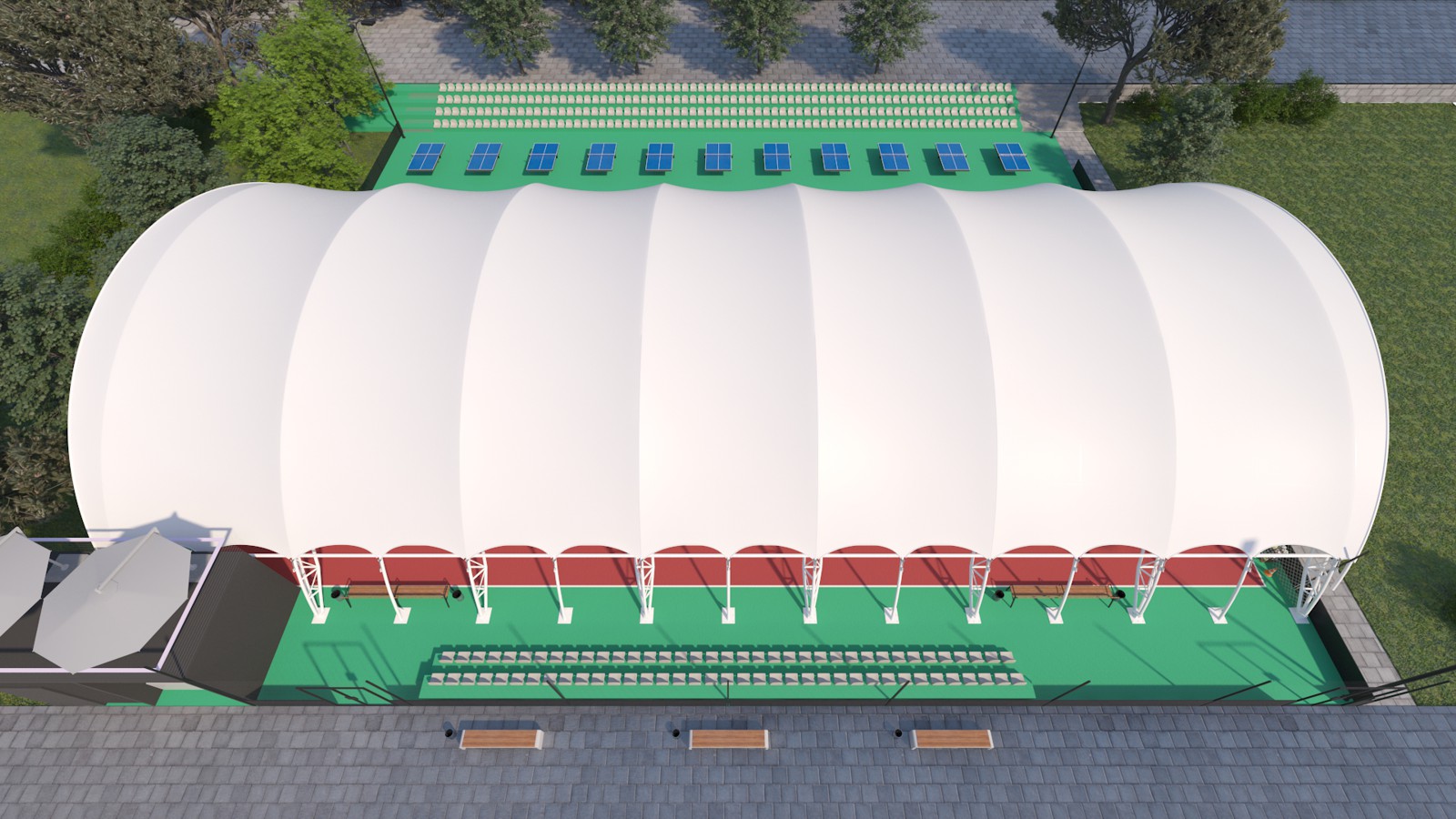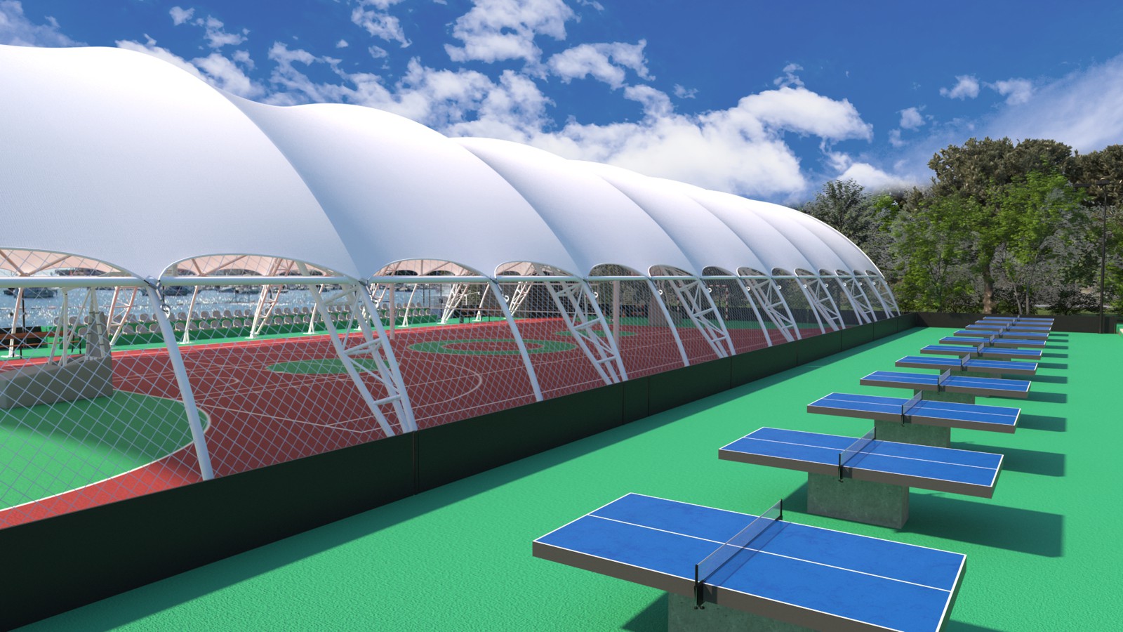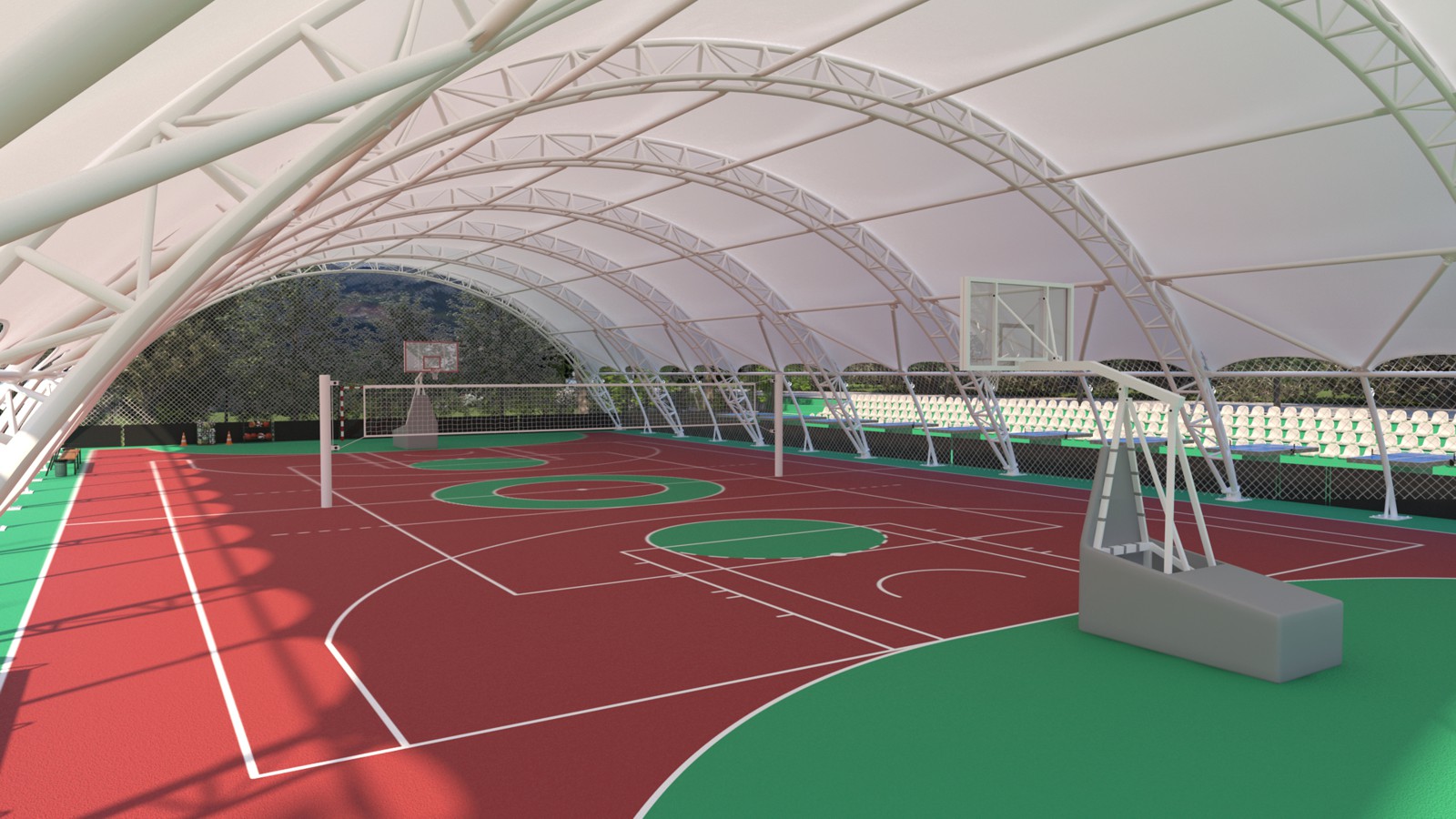 This dynamic sports facility is defined by its striking lattice canopy—an architectural feature that provides both shelter and visual identity. The open, breathable structure allows natural light and airflow, creating a comfortable environment for a variety of sports and community activities. Flexible in design, the space adapts to different functions, from training sessions to recreational events, while maintaining a strong connection to the surrounding landscape. Durable materials and minimalistic finishes ensure longevity, functionality, and a bold contemporary aesthetic.